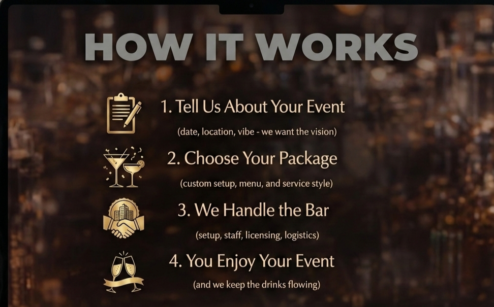 We handle everything your event bar needs so you don’t have to. From setup to breakdown, our team delivers seamless service, premium ingredients, and a polished guest experience every time.